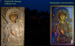 The St George Icon project was based on the miraculous Phanuel Icon of St George the Victorious, which was developed as a prestigious gift for the Zograf Monastery and intended for representational and ceremonial purposes. The hologram depicts excellent control of the fringes to create subtle colours.